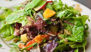 Mixture of Radicchio and Crunchy kale with hazelnut, dates, chicken, and blue cheese, such a mouthwatering dish. Sycamore a food truck in Los Angeles is famous for its Mediterranean Gem Salad.