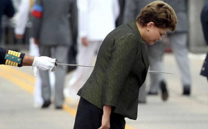 A moment when it looks like Dilma Rousseff is going to be stabbed.