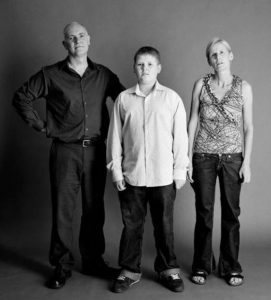 The mother dyes her hair so it doesn’t betray how she has changed over time, but her wrinkles do. As for the father, whose skin is also more wrinkled, it’s his receding hairline and graying hair reveal his age.